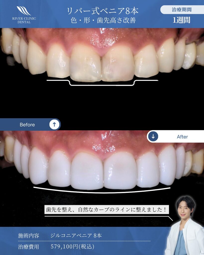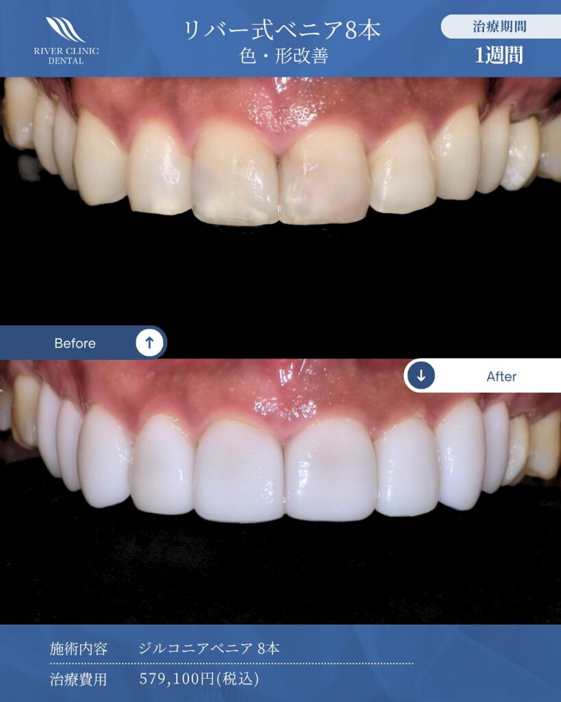 リバー式ベニアで色や形の改善も行うことが可能です。