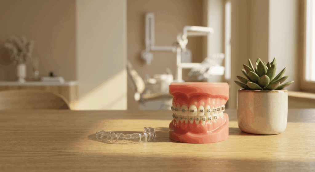 当院では、こうした”予防的観点”も踏まえた矯正治療を大切にしています。中でもマウスピース型矯正装置(インビザライン)は、透明で目立ちにくく、取り外し可能な点が特徴です。食事や歯磨きが通常通り行えるため、口腔衛生管理を維持しやすいというメリットがあります。